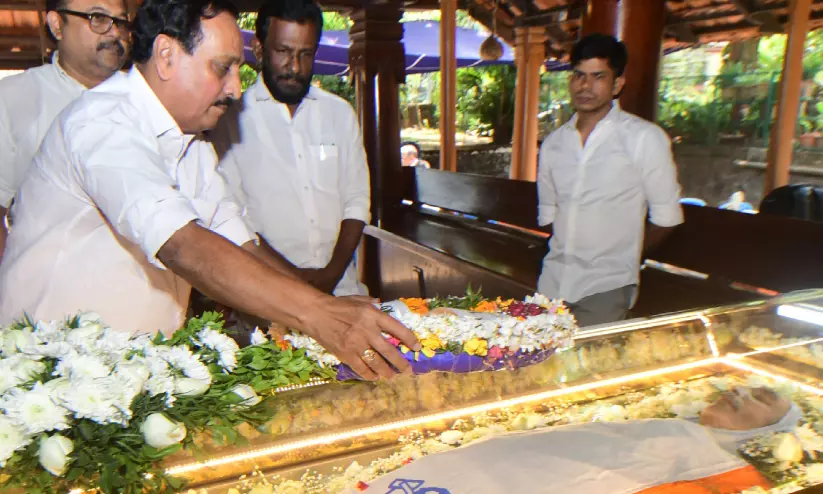 കെ.പി. ഉണ്ണികൃഷ്ണന്റെ മൃതദേഹത്തിൽ മന്ത്രി പി.എ. മുഹമ്മദ് റിയാസ് അന്തിമോപചാരം അർപ്പിക്കുന്നു