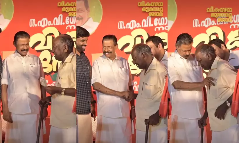 ബാലുശ്ശേരി: ബാലുശ്ശേരിയിൽ വയോധികൻ തന്റെ പെൻഷൻ തുക സി.പി.എം സംസ്ഥാന സെക്രട്ടറി എം.വി. ഗോവിന്ദന് കൈമാറിയതിന് പിന്നിൽ നേതാക്കളുടെ തിരക്കഥ. ഇടതുപക്ഷ ജനാധിപത്യ മുന്നണിയുടെ വടക്കൻ മേഖല വികസന മുന്നേറ്റ ജാഥയിലാണ് സംഭവം. പണം കൈമാറണമെന്ന് നേതാക്കൾ പറഞ്ഞതായി ബാലുശ്ശേരി സ്വദേശി മൊയ്തീൻ പറഞ്ഞു. ഗോവിന്ദന് നൽകിയാൽ പണം തിരികെ തനിക്ക് തന്നെ നൽകുമെന്ന് നേതാക്കൾ പറഞ്ഞതായും അദ്ദേഹം പറയുന്ന വിഡിയോ സമൂഹമാധ്യമത്തിൽ പ്രചരിക്കുന്നുണ്ട്.