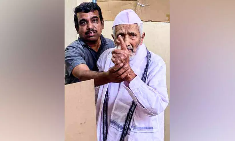 കായംകുളം: നൂറ്റാണ്ട് നിറവിലെ ഓർമകൾ പേറുന്ന സ്വതന്ത്ര്യസമര സേനാനി ബേക്കർ സാഹിബ് 104ാം വയസ്സിലും സമ്മതിദാനവകാശം രേഖപ്പെടുത്തി. നഗരസഭ 25ാം വാർഡിൽ ഒന്നാം നമ്പർ പോളിങ് സ്റ്റേഷനായ ഇൻഡസ്ട്രിയൽ എസ്റ്റേറ്റിലെ ബൂത്തിലാണ് ആദ്യകാല കമ്യൂണിസ്റ്റ് നേതാവ് കൂടിയായ കെ.എ. ബേക്കർ വോട്ട് ചെയ്തത്. ത്യാഗങ്ങളിലൂടെ നേടിയ സ്വാതന്ത്ര്യം നഷ്ടമാകുന്നതിന്റെ സങ്കടവും പേറിയാണ് ഇത്തവണയും ഈ വയോധികൻ തെരഞ്ഞെടുപ്പിന്റെ ഭാഗമായത്.