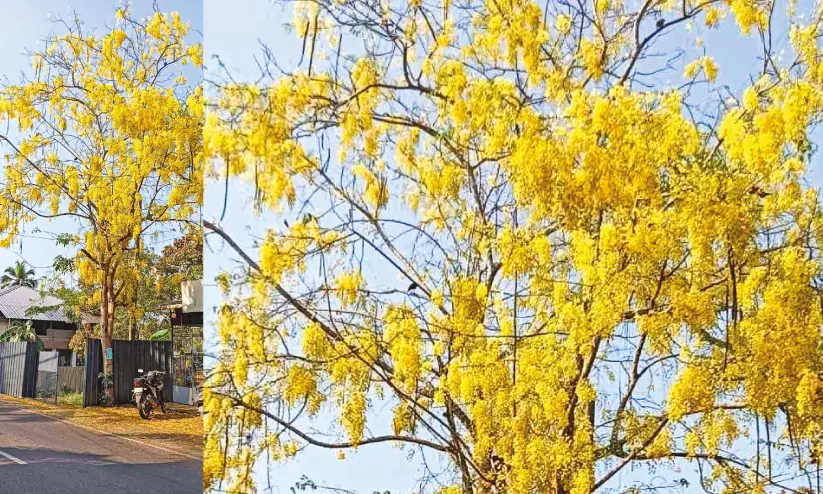 പുന്നപ്ര തെക്ക് സെന്റ് അലോഷ്യസ് സ്കൂളിന് സമീപം തീരദേശ റോഡരികില് പൂത്തുനില്ക്കുന്ന കണിക്കൊന്ന