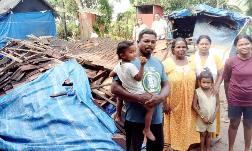 തകർന്നുവീണ ഷെഡിനരികിൽ കുടുംബാംഗങ്ങൾ