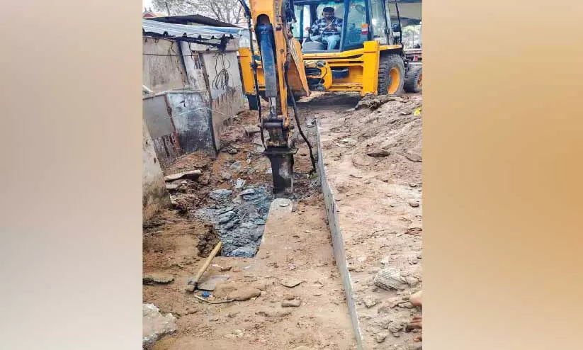 തകരാറിലായ പൈപ്പ് ലൈന് നന്നാക്കാൻ എരമല്ലൂര് കാഞ്ഞിരത്തിങ്കല് ക്ഷേത്രത്തിന് സമീപം കാന പൊട്ടിക്കുന്നു