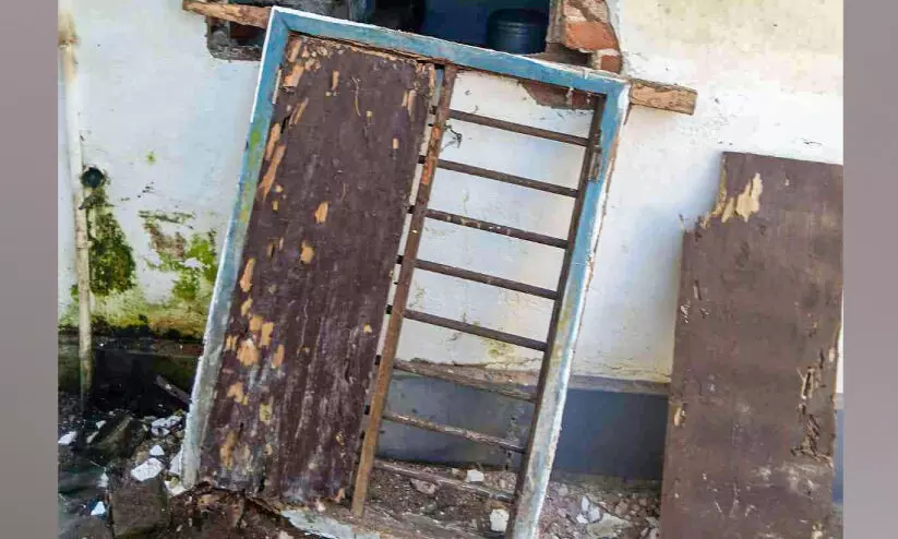 വീടിന്റെ ജനല്പാളി പൊളിച്ച് താഴേക്ക് വെച്ചിരിക്കുന്നു