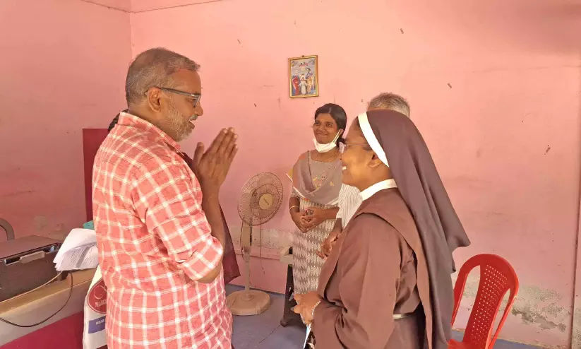എൽ.ഡി.എഫ് സ്ഥാനാർത്ഥി പി.പ്രസാദ് വോട്ടഭ്യർത്ഥിക്കുന്നു.