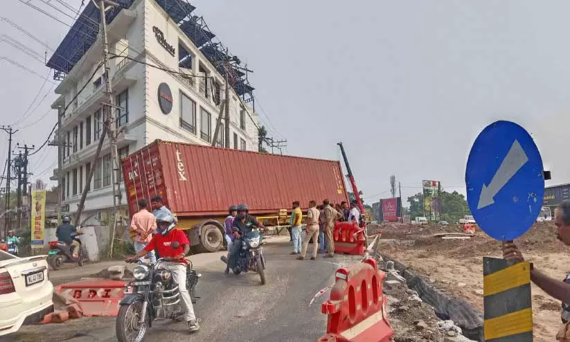 കണ്ടെയ്നര് ലോറി കുടുങ്ങിയപ്പോൾ