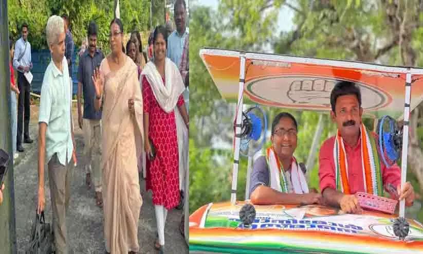 സ്റ്റേഷനിൽ പ്രചരണവുമായി എത്തിയപ്പോൾ, യു.ഡി.എഫ് സ്ഥാനാർഥി ഷാനിമോൾ ഉസ്മാൻ കെ.പി.സി.സി മാധ്യമ വക്താവ് ഡോ. ജിന്റോ ജോണിനൊപ്പം മണ്ഡല