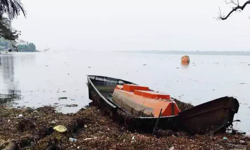 അരൂർ കായൽക്കരയിൽ തള്ളിയ വഞ്ചിയുടെ ഫൈബർ ഗ്ലാസ് മോൾഡ്