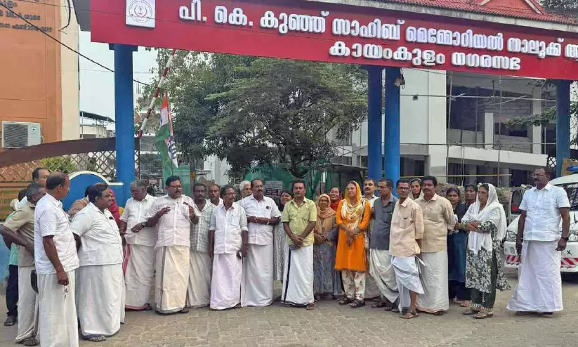 കായംകുളം ഗവ. ആശുപത്രിക്ക് മുന്നിൽ ഐ.എൻ.ടി.യു.സി നടത്തിയ പ്രതിഷേധ കൂട്ടായ്മ ജില്ല പ്രസിഡന്റ് ജി. ബൈജു ഉദ്ഘടനം ചെയ്യുന്നു