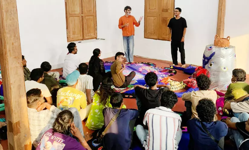 കൊച്ചി: കൊച്ചി-മുസിരിസ് ബിനാലെയുടെ ഭാഗമായി കേരള മ്യൂസിയവുമായി സഹകരിച്ച് മ്യൂസിയം ഓഫ് ആർട്ട് ആൻഡ് ഫോട്ടോഗ്രാഫി ഇന്ത്യൻ ആംഗ്യഭാഷാ ശിൽപശാല സംഘടിപ്പിച്ചു. ഫോർട്ട് കൊച്ചി ഡച്ച് വെയർഹൗസിൽ നടക്കുന്ന ബിനാലെയിലെ ശ്രദ്ധേയ പ്രദർശനങ്ങളിലൊന്നായ അഫ്ര ഐസ്മയുടെ ‘മൈൽഡ് ടൂത്ത് ഓഫ് മിൽക്കിന്റെ’ ഭാഗമായാണ് പരിപാടി ഒരുക്കിയത്. ‘ലേൺ ഐ.എസ്.എൽ - കൊച്ചി എഡിഷൻ’ എന്ന് പേരിട്ട ശിൽപശാല നടന്നത് മൂന്ന് സെഷനുകളായി.