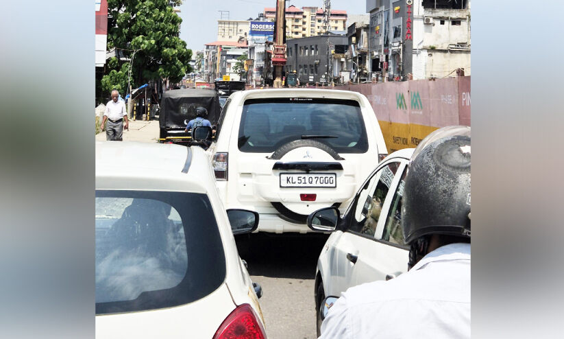 കാക്കനാട്-പാലാരിവട്ടം റൂട്ടിൽ മെട്രോ നിർമാണം നടക്കുന്നിടത്തെ ഗതാഗതക്കുരുക്ക്