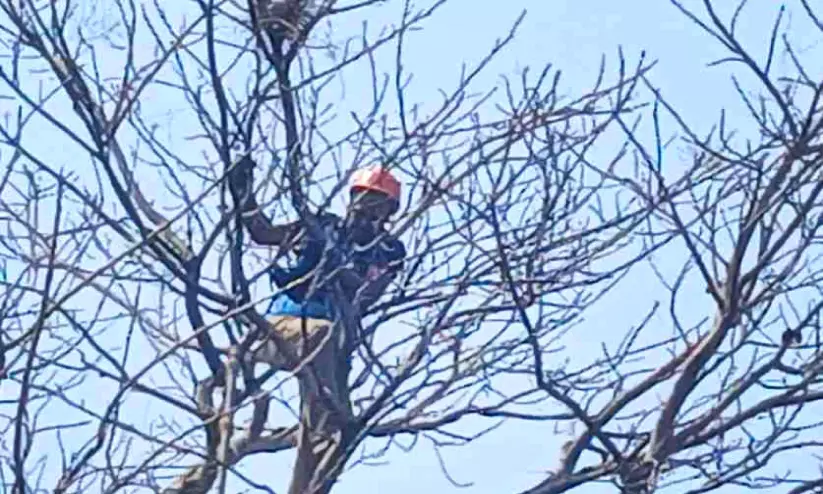 സാഹസികമായി കയറി കാക്കക്കുഞ്ഞിന്റെ രക്ഷപെടുത്തുകയായിരുന്നു. ഫയർ ഓഫീസർ യേശുദാസ്, പ്രസാദ്, സുനിൽകുമാർ, സുമേഷ് എന്നിവർ ചേർന്നാണ് രക്ഷാപ്രവർത്തനം നടത്തിയത്.