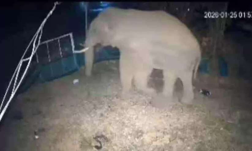 സ്വകാര്യ ഫാമിലെത്തിയ ആനകളിലൊന്ന് (മുറിവാലൻ കൊമ്പൻ)