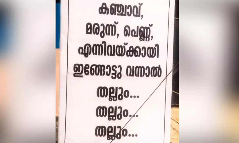 പെരുമ്പാവൂര്: ലഹരിയും സുഖവും തേടി കണ്ടന്തറ ഭായി കോളനിയിലെത്തുന്നവര്ക്ക് ഇനി അടികിട്ടുമെന്നുള്ള മുന്നറിയിപ്പ് ശ്രദ്ധേയമാകുന്നു. കഞ്ചാവ്, പെണ്ണ്, മരുന്ന് എന്നിവക്ക് ഇങ്ങോട്ടുവന്നാല് ‘തല്ലു... തല്ലും... തല്ലും’ എന്നെഴുതി വെച്ചിരിക്കുന്ന ബോര്ഡുകളാണ് ഇതിനകം ശ്രദ്ധേയമായി മാറിയത്.