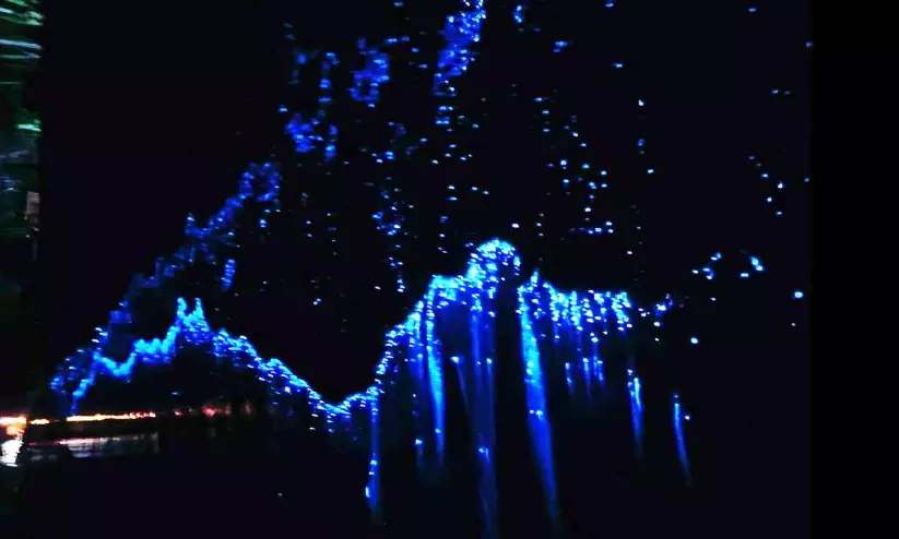കായൽ പരപ്പിൽ നീല വെളിച്ചം തെളിയുന്ന കവര് പ്രതിഭാസം (ഫയൽ ചിത്രം)