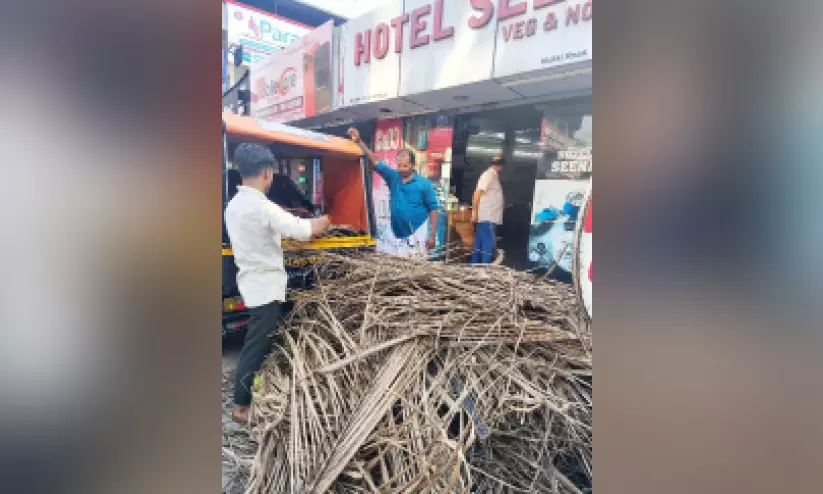 തൊടുപുഴ നഗരത്തിലെ ഹോട്ടലിന് മുന്നിൽ അടുപ്പിലേക്ക് ആവശ്യമായ ചൂട്ടും വിറകുമടക്കം എത്തിക്കുന്നു