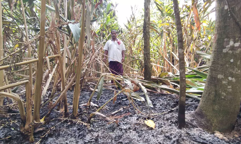 ഇരട്ടയാർ ശാന്തിഗ്രാമിന് സമീപം തീപിടിത്തം നടന്ന കൃഷിയിടം
