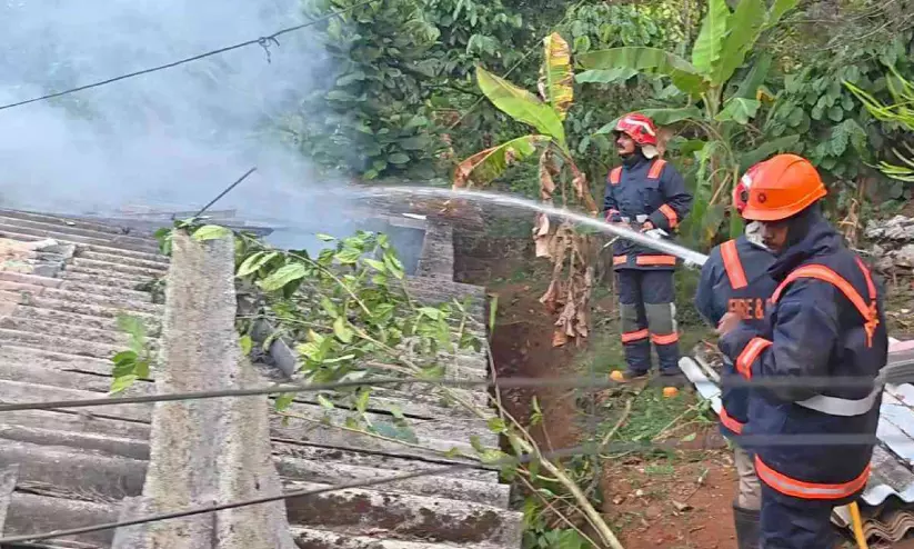 കട്ടപ്പന മുളകരമേട്ടിൽ വീടിന് തീപിടിച്ചത് അഗ്നിരക്ഷസേന അണക്കുന്നു