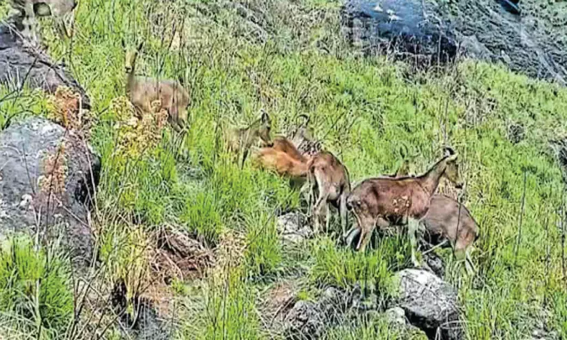 അടിമാലി: കൈയേറ്റ മാഫിയ മലയിറങ്ങിയപ്പോൾ ചൊക്രമുടിയുടെ നീർച്ചോലകളും പുൽമേടുകളും കൈയടക്കി വരയാടുകൾ. തദ്ദേശവാസികളുടെ കന്നുകാലികളോടൊപ്പമാണ് വരയാടിൻ കൂട്ടങ്ങളും മേഞ്ഞുനടക്കുന്നത്. വരയാടുകൾ കൂടാതെ രാജമലയിലേതിന് സമാനമായി നീലക്കുറിഞ്ഞി ചെടികളും കാട്ടാന, കാട്ടുപോത്ത്, കുരങ്ങുകൾ, അപൂർവയിനം പക്ഷികൾ എന്നിവയും ചൊക്രമുടിയുടെ ജൈവ വൈവിധ്യത്തിന് നിറം പകരുന്നു.