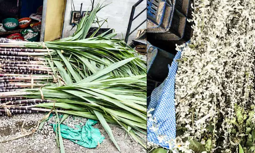 പൊങ്കല് ആഘോഷത്തിന്റെ ഭാഗമായി ഇടുക്കി ജില്ലയിലെ വ്യാപാരശാലയില് വില്പ്പനക്കെത്തിച്ച കരിമ്പും കാപ്പുകെട്ടും