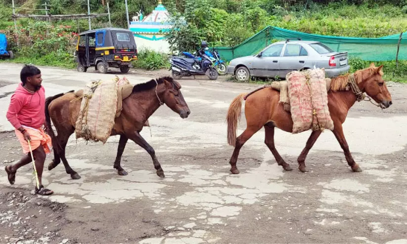 കൃഷിയിടങ്ങളിൽനിന്ന് പച്ചക്കറികൾ കഴുതപ്പുറത്ത് കയറ്റി കോവില്ലൂരിലെ ചന്തയിൽ എത്തിക്കുന്നു