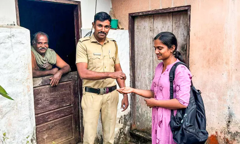 പീരുമേട് സ്റ്റേഷനിലെ സിവിൽ പൊലീസ് ഓഫിസർ പ്രമോദ് സ്വർണചെയിൻ വർഷക്ക് കൈമാറുന്നു