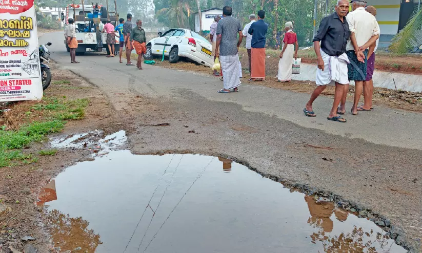 തൊടുപുഴ: റോഡിലെ കുഴിയിൽ ചാടാതിരിക്കാനായി വെട്ടിച്ച് മാറ്റിയ കാർ നിയന്ത്രണം വിട്ട് കനാലിലേക്ക് വീണു. ഇടവെട്ടിച്ചിറ കനാൽ കവലയിൽ ഞായറാഴ്ച രാത്രിയാണ് സംഭവം. റോഡിലെ കുഴി വെട്ടിച്ചുമാറ്റുന്നതിനിടെ കാർ നിയന്ത്രണം വിട്ട് കനാലിലേക്ക് വീഴുകയായിരുന്നു. തിട്ടയിലിടിച്ച് നിന്നതിനാൽ അപകടം ഒഴിവായി. കാറിലുണ്ടായിരുന്ന ഡ്രൈവർ വെള്ളത്തിലേക്ക് ചാടി രക്ഷപ്പെടുകയായിരുന്നു.