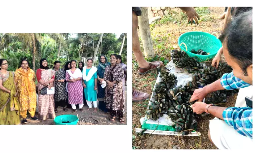 കല്ലുമ്മക്കായ വിളവെടുപ്പ് നടത്തിയ വനിത സംരംഭകർ
