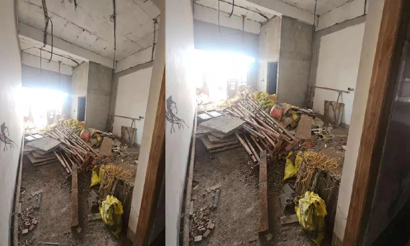 മുഖ്യമന്ത്രി ഉദ്ഘാടനംചെയ്ത കല്യാട് അന്താരാഷ്ട്ര അയുർവേദ ഗവേഷണകേന്ദ്രത്തിന്റെ ഉൾവശത്തെ മുറികൾ പണിതീരാത്ത നിലയിൽ