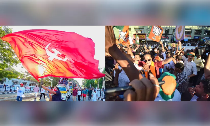 ആവേശം വാനോളം... തെരഞ്ഞെടുപ്പ് കൊട്ടിക്കലാശത്തിനിടെ പാർട്ടി കൊടി വീശുന്ന