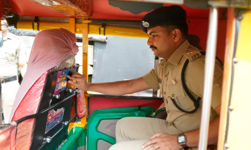 ഓട്ടോറിക്ഷകളിൽ സ്റ്റിക്കർ പതിപ്പിച്ച് കുടുംബശ്രീ സ്നേഹിത സ്റ്റിക്കർ കാമ്പയിൻ സിറ്റി പൊലീസ് കമീഷണർ പി. നിധിൻ രാജ് ഉദ്ഘാടനം ചെയ്യുന്നു