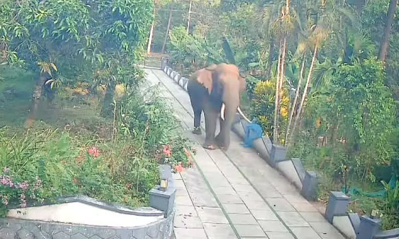 ജനവാസ മേഖലയിലിറങ്ങിയ കാട്ടാന വീട്ടുമുറ്റത്തുകൂടി ഓടുന്നു