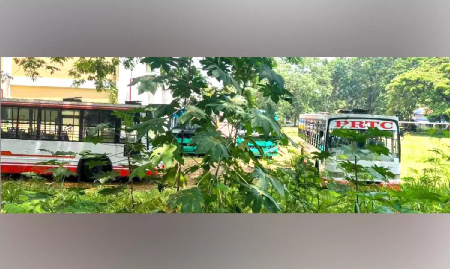 മാഹി സിവിൽ സ്റ്റേഷൻ മുറ്റത്ത് ഡ്രൈവർ ഇല്ലാത്തതിനാൽ നിർത്തിയിട്ട പി.ആർ.ടി.സി ബസ്