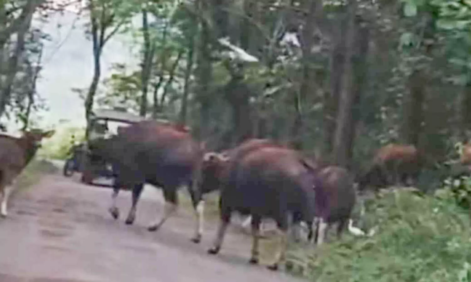 പെരുവ റോഡിൽ നിലയുറപ്പിച്ച കാട്ടുപോത്തിൻ കൂട്ടം