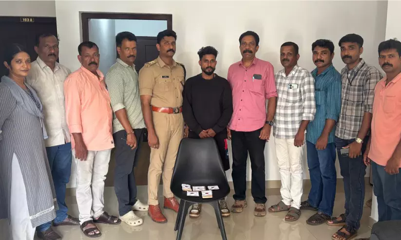 മയക്കുമരുന്നുമായി പിടിയിലായ മുബഷിർ എക്സൈസ് സംഘത്തോടൊപ്പം
