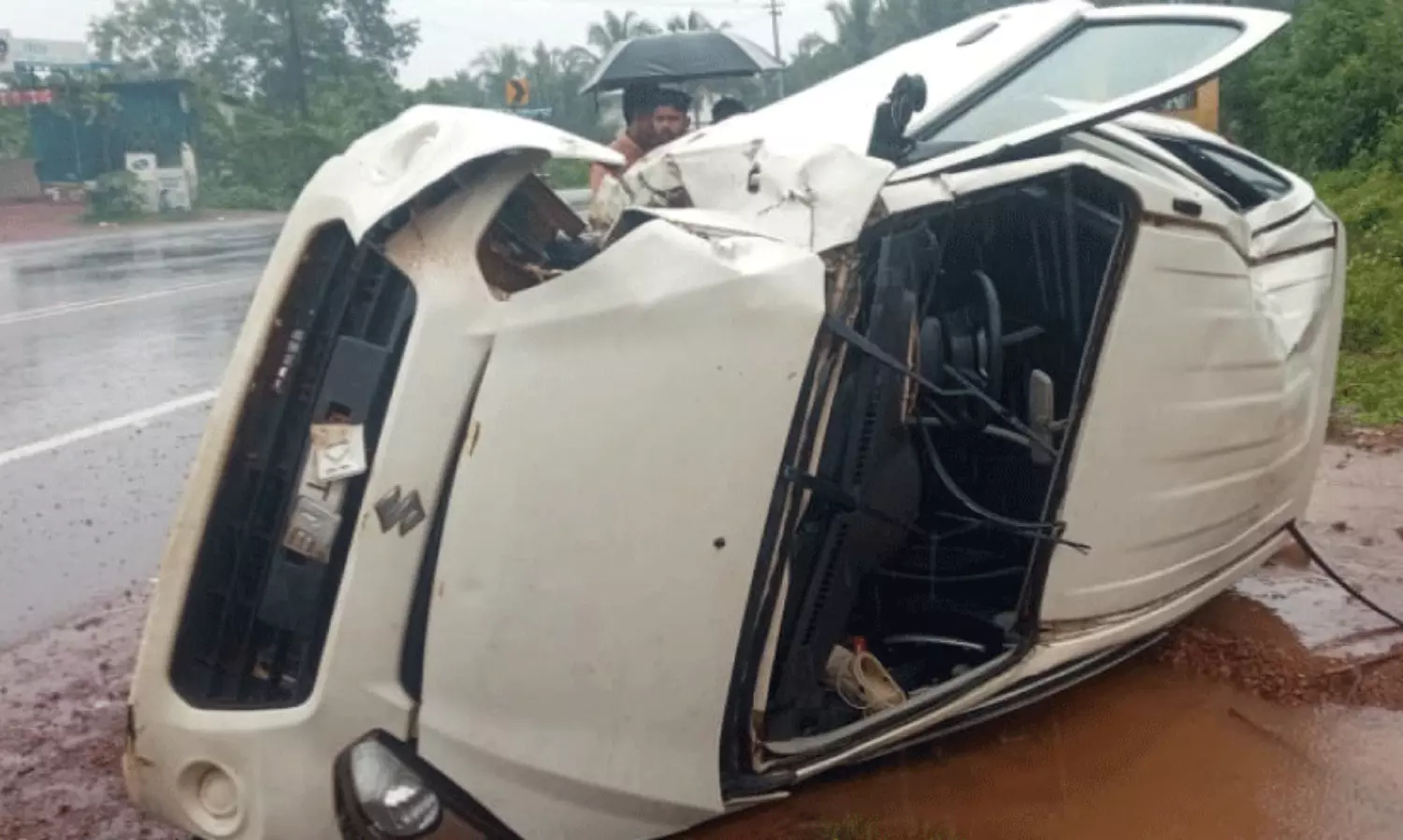 പുളിത്തടി ബസ് സ്റ്റോപ്പിന് സമീപം നിയന്ത്രണംവിട്ട് മറിഞ്ഞ കാർ