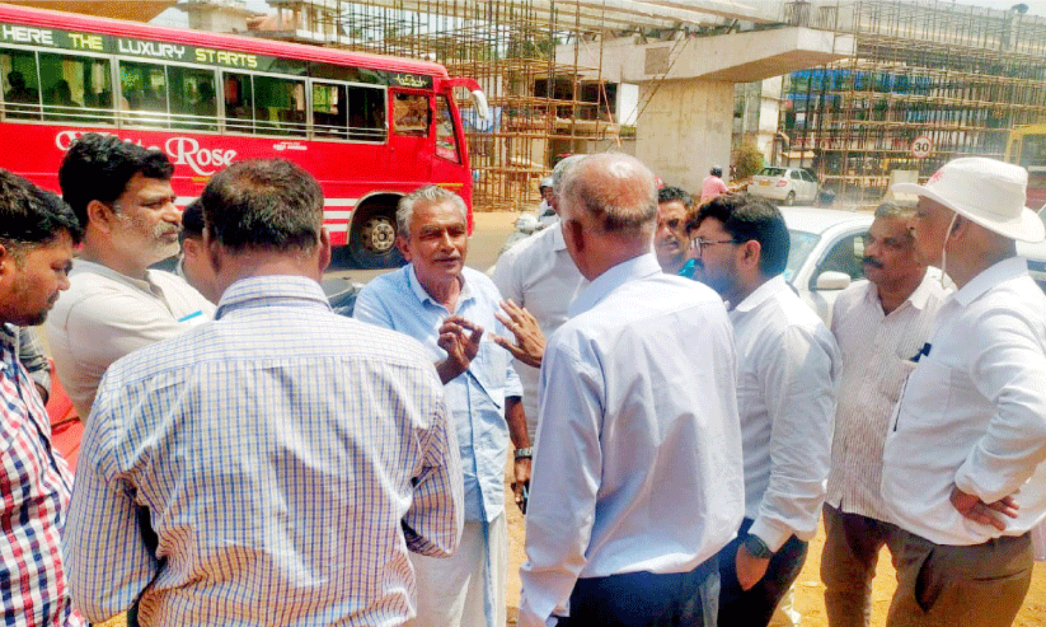 ചെർക്കളയിലെ സർവിസ് റോഡ് പ്രശ്നം കർമസമിതി ദേശീയപാത സംഘത്തോട് വിശദീകരിക്കുന്നു