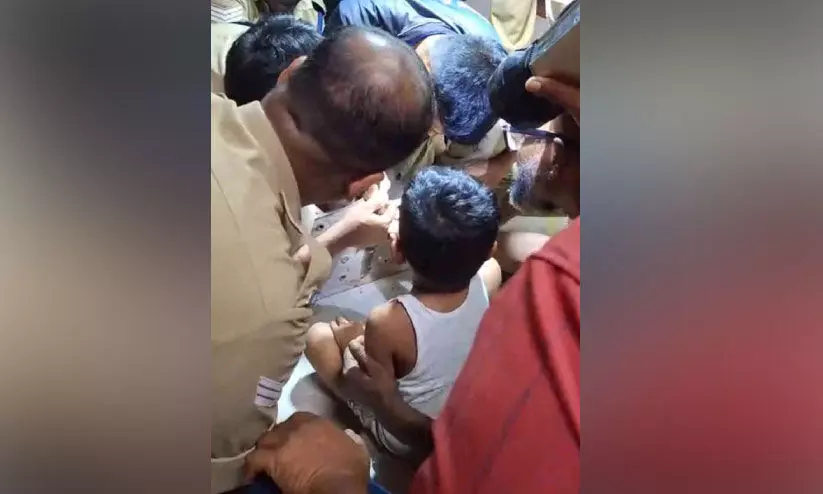 കാഞ്ഞങ്ങാട്: ഉപേക്ഷിച്ച ഇലക്ട്രിക് ഇരുമ്പ് പ്ലേറ്റിലെ ദ്വാരത്തിൽ ആറു വയസ്സുകാരന്റെ കൈവിരൽ കുടുങ്ങി. മണിക്കൂറുകളോളം പരിശ്രമിച്ചിട്ടും വീട്ടുകാർക്ക് കുട്ടിയുടെ കൈവിരൽ പുറത്തെടുക്കാനായില്ല. ഒടുവിൽ രക്ഷകരായി അഗ്നിരക്ഷാസേന ഉദ്യോഗസ്ഥർ.