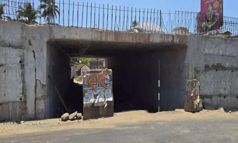 നീലേശ്വരത്തെ അടിപ്പാതയിലെ ഇടതുഭാഗത്തെ ഭിത്തിയിൽ വിള്ളൽ വീണ നിലയിൽ