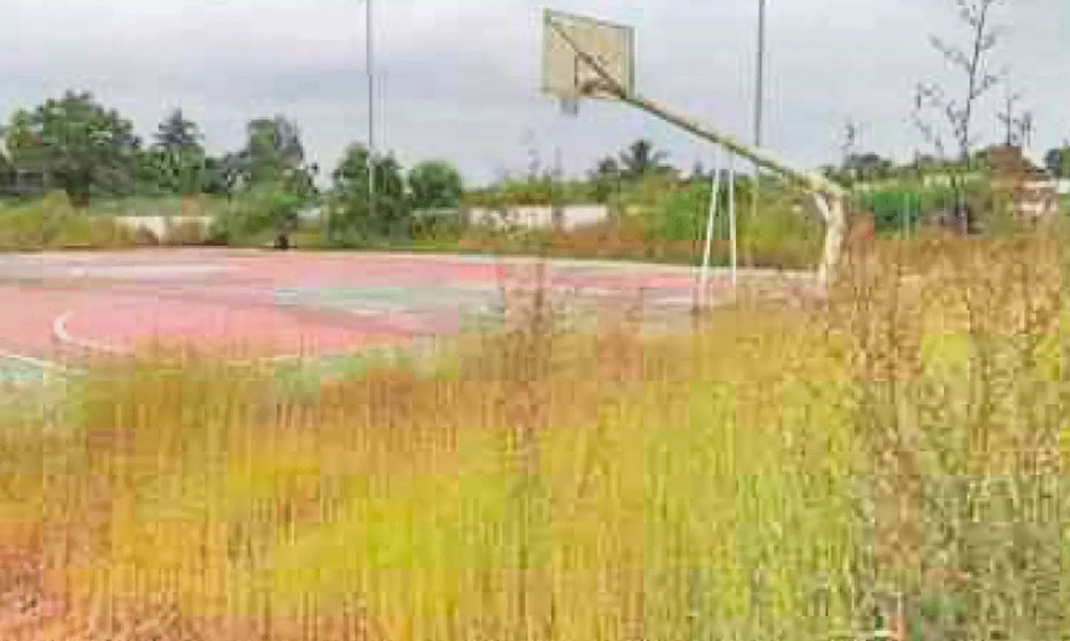 ഇ.എം.എസ് സ്റ്റേഡിയത്തിലെ ബാസ്കറ്റ് ബാൾ കോർട്ടിന് ചുറ്റും കാടുമൂടിക്കിടക്കുന്നു