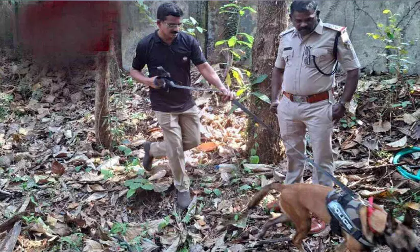 നീലേശ്വരം ബി.എസ്.എൻ.എൽ ഓഫിസ് വളപ്പിലെ മോഷണം നടന്ന സ്ഥലം പൊലീസും ഡോഗ് സ്ക്വാഡും പരിശോധിക്കുന്നു