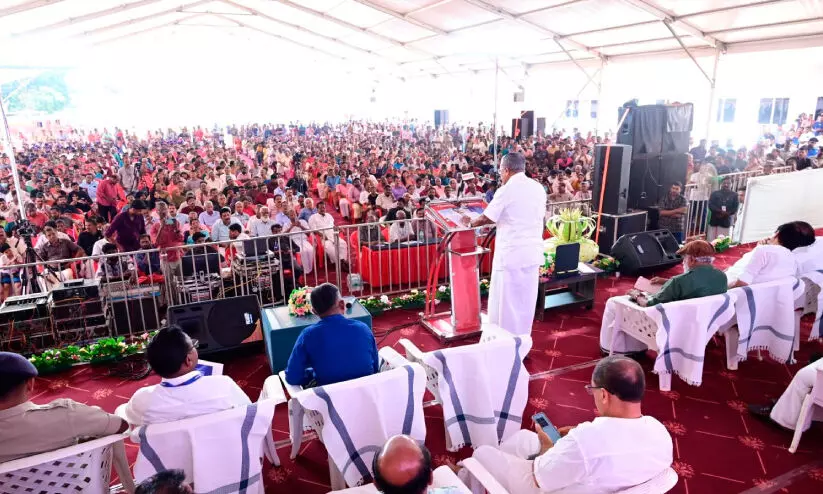 തൃക്കരിപ്പൂർ നടക്കാവിൽ നിർമിച്ച അത്യാധുനിക മൾട്ടി പർപസ് ഇൻഡോർ സ്റ്റേഡിയം മുഖ്യമന്ത്രി പിണറായി വിജയൻ ഉദ്ഘാടനം ചെയ്യുന്നു