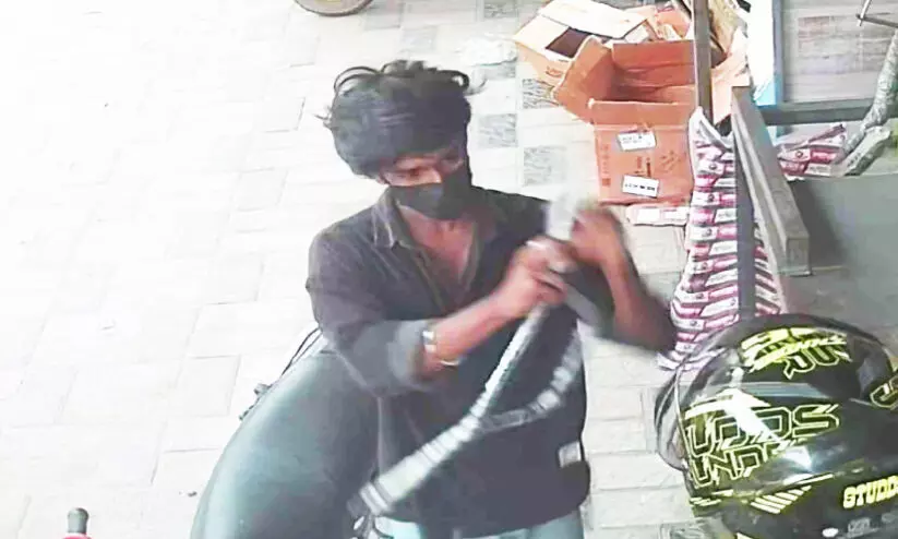 കടയിലെ സി.സി ടി.വിയിൽ പതിഞ്ഞ തട്ടിപ്പുകാരന്റെ ദൃശ്യം