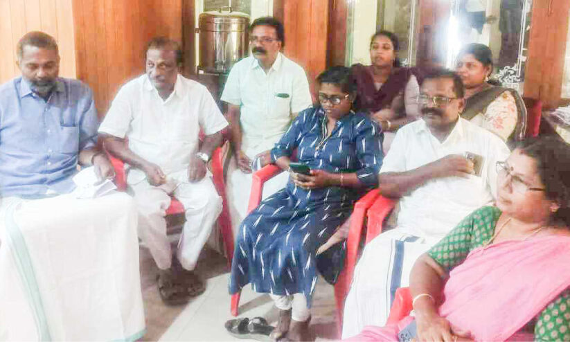 നഗരസഭ ചെയർപേഴ്സൻ ബീന ശശിധരന്റെ നേതൃത്വത്തിൽ കൗൺസിലർമാർ നഗരസഭ കാവടത്തിന് മുന്നിൽ പ്രതിഷേധിക്കുന്നു