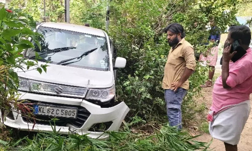 ചോഴിയക്കോടിന് സമീപം നിയന്ത്രണംവിട്ട കാര് വീട്ടുമുറ്റത്തേക്ക് ഇടിച്ചുകയറിയ നിലയില്