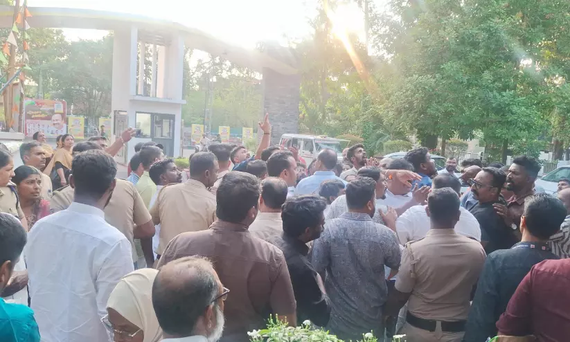 കോർപറേഷൻ മുറ്റത്ത് യു.ഡി.എഫ് കൗൺസിലർമാരും ബി.ജെ.പി പ്രതിഷേധക്കാരും നേർക്കുനേർ വന്നപ്പോൾ