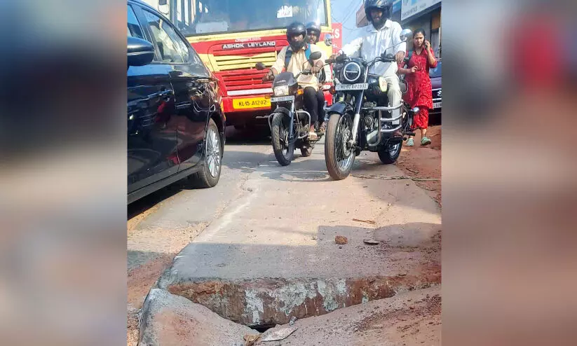 ഇവിടെ ദേശീയപാതയുടെ ഉയരപ്പാത നിർമാണം നടക്കുന്നതിനാൽ സർവിസ് റോഡിന്റെ പകുതി ഭാഗത്ത് ഡിവൈഡറുകൾ വെച്ചിരിക്കുകയാണ്. അതിനാൽ ഒരു വാഹനത്തിന് കഷ്ടിച്ച് മാത്രമേ ഇതുവഴി പോകാൻ കഴിയുകയുള്ളൂ. ഓടയുടെ മേൽമൂടി തകർന്നതോടെ ഞെരുങ്ങിയാണ് ഇതുവഴിവാഹനങ്ങൾ കടന്നുപോകുന്നത്. വെള്ളിയാഴ്ച പുലർച്ചയാണ് ഓടയുടെ മേൽമുടി തകർന്നത് നാട്ടുകാരുടെ ശ്രദ്ധയിൽപെട്ടത്.