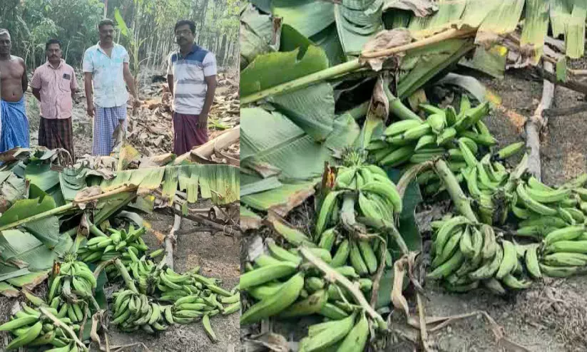 കടശ്ശേരിയിൽ കഴിഞ്ഞദിവസം കാട്ടാന നശിപ്പിച്ച ഏത്തവാഴത്തോട്ടം