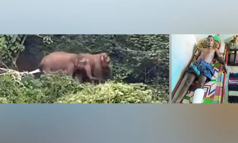 1. കറവൂർ മേഖലയിൽ തമ്പടിച്ചിരിക്കുന്ന കാട്ടാനക്കൂട്ടം 2. കാട്ടനാക്കൂട്ടത്തെ കണ്ട് രക്ഷപ്പെടാൻ ശ്രമിക്കുന്നതിനിടെ വീണ് പരിക്കേറ്റ രാജു