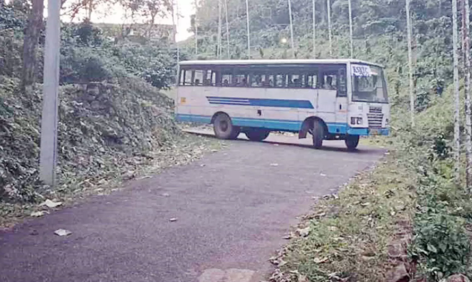 കെ.എസ്.ആർ.ടി.സിയുടെ ആർ.എ.സി 08 ബസ് വലിയ ഹെയർപിൻ വളവ് കടന്ന് അമ്പനാട്ടേക്ക് വരുന്നു