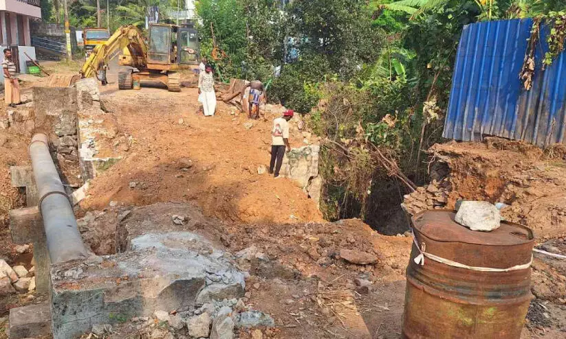 ചെമ്മന്തൂർ-നരിക്കൽപാതയിലെ കുതിരച്ചിറയിലെ കലുങ്ക് നിർമാണം